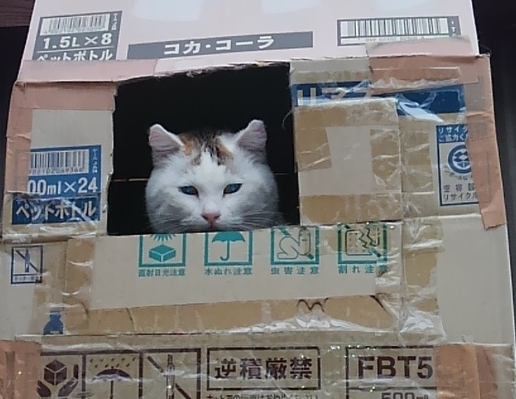ダンボールのお部屋がお気に入り