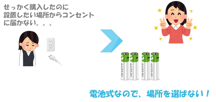 ★ コンセントが届かないので、電池式にして欲しい!