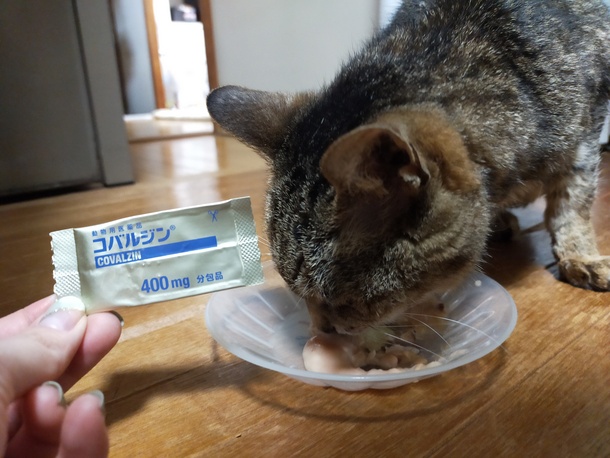 ちゅーるに混ぜて唇の裏に塗りつける!!
