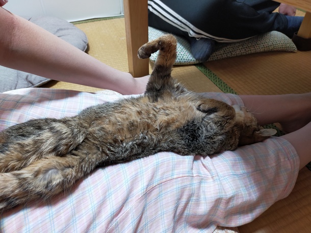 つい顔をうずめてしまいますが、換毛期なので顔中に毛がついてかゆいかゆい😖