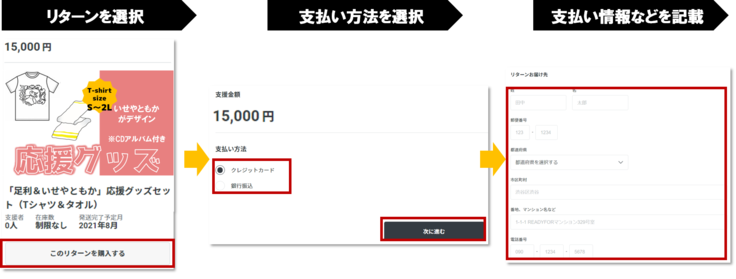 - 支援したリターンのコースを選び「このリターンを購入する」を選択