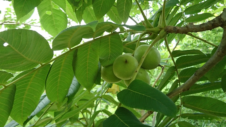 植林したクルミに実がなりました。クルミは成長が速いです。