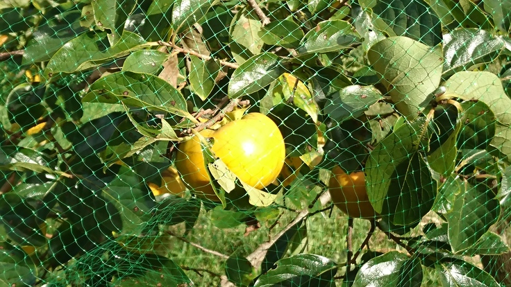 カキが色づきました。試食しましたが実に美味しかったです。鳥に食われないようネットをかけましたが大丈夫でしょうか? 今月の定例会で皆さんでshareできると良いのですが。