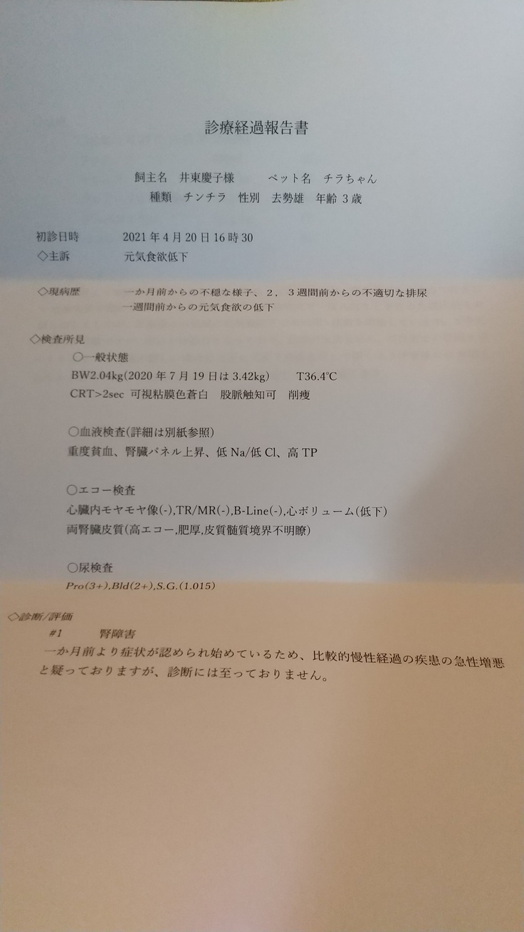 異変に気付き、動物病院へ連れて行くと、末期の腎臓病でした。