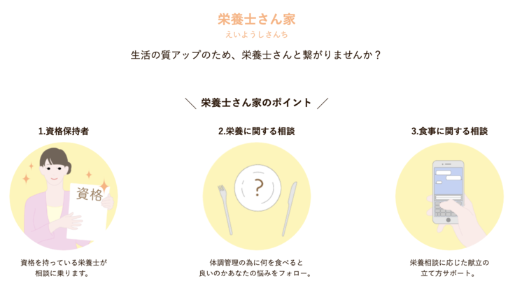 食事や栄養に関する相談をするために栄養士と一般の方を繋げるサイト
