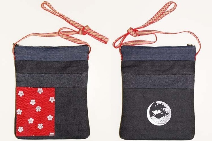 ポケット部分に倉敷の特産品である畳縁、肩紐に真田紐を使用しました。