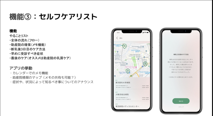 機能③ ケアできる助産院を調べられ、断乳当日からのセルフケアをチェックできる