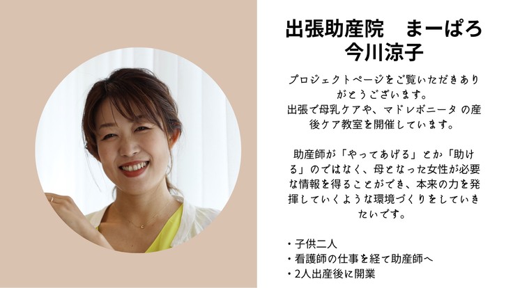 はじめまして。愛知県一宮市で助産師をしています、今川涼子です。