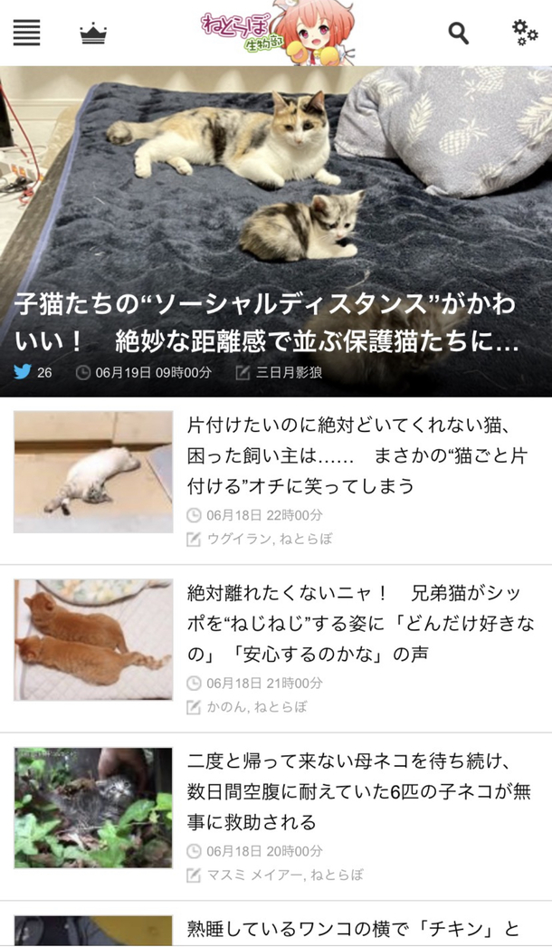 二点目は本日朝9時よりネットニュースの「ねとらぼ」さんに、我が家の子猫たちがソーシャルディスタンス😸と掲載されましたのでご報告致します。