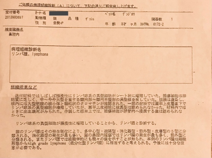 そして、病院に連れて行ったところ鼻腔内リンパ腫と診断され、余命3ヶ月と宣告されました。