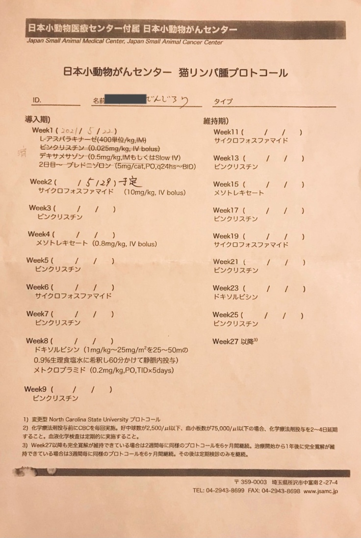 抗がん剤治療はでんちゃんの様子をみながら進めていくこととなります。