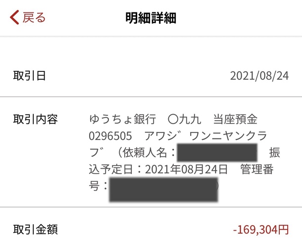 先日、淡路ワンニャンクラブ様への振り込みが完了いたしました。