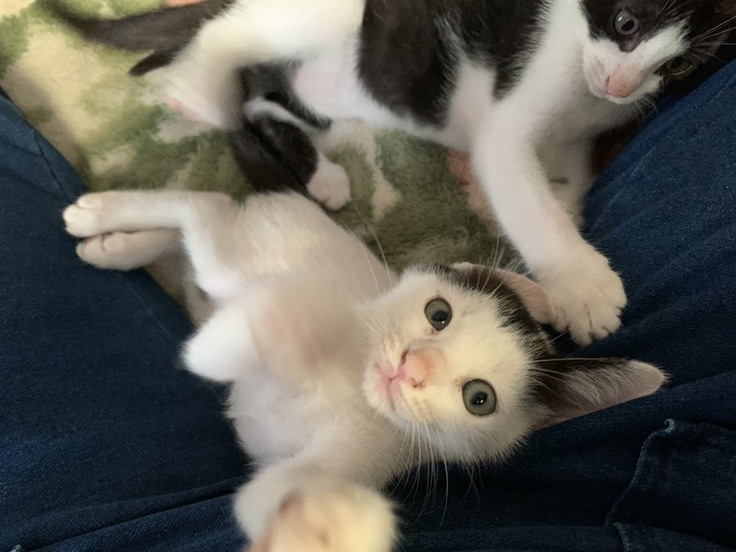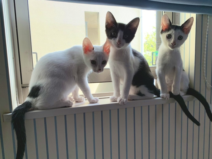 授乳期に保護され、親を人だと思っているようで人懐っこく、家にお客様が来ると3匹揃って挨拶をしてくれます。