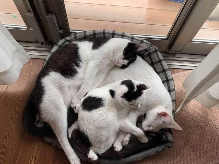 3匹とも母子感染による猫白血病ウイルス(FeLV)感染症になり、テンとハラミはリンパ腫治療中、ウーは白血病の治療をしております。