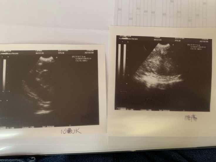 エコー検査にて心嚢水とリンパ腫4cmを確認