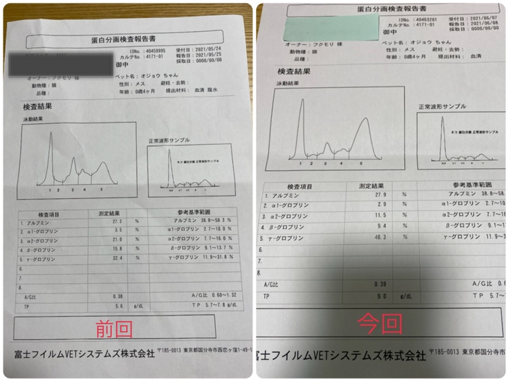 お嬢はまだアルブミンとγ−グロブリンが基準範囲内を逸脱していました。