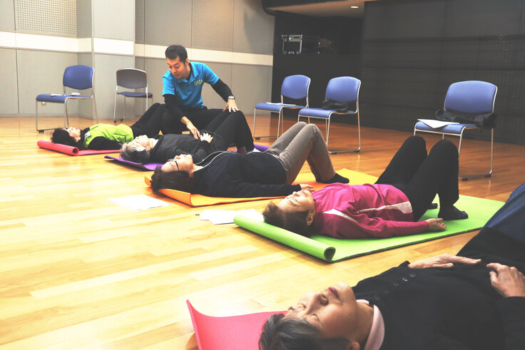 近隣の自主グループの皆さんが集まり当院理学療法士が運動指導を行っていましたが、