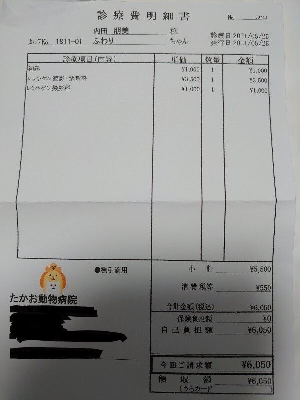 *治療期間は、ふわりの体調で回復する期間が変わりますのであくまでも予定日の