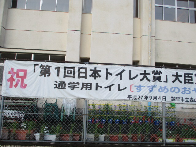 すずめごろし峠の登り口には、2015年に第1回日本トイレ大賞を受賞した公衆トイレ『すずめのお宿』があります。これは、遠距離通学の子ども達のために設置されたトイレで、児童と保護者が当番制で清掃活動を続けており、その活動が評価されて受賞されたものです。