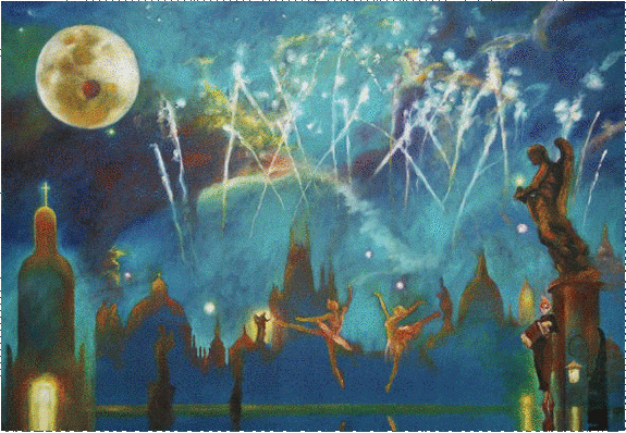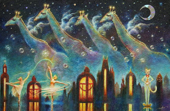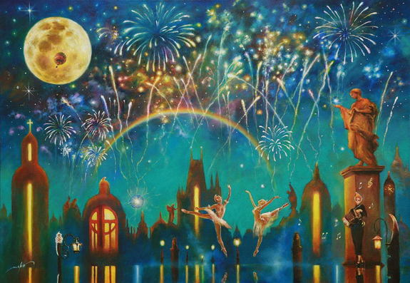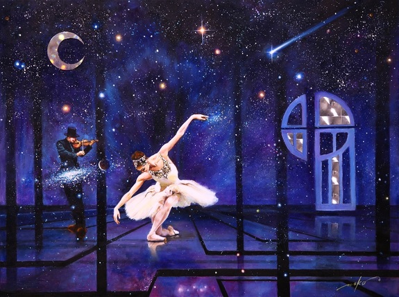 作品【ミューズの宴】…作品【不思議の森】の少女がバレリーナとなり、エトワールとなってミューズを継承するというストーリーは、画集『小さな美術館』のメインテーマとなる作品です。
