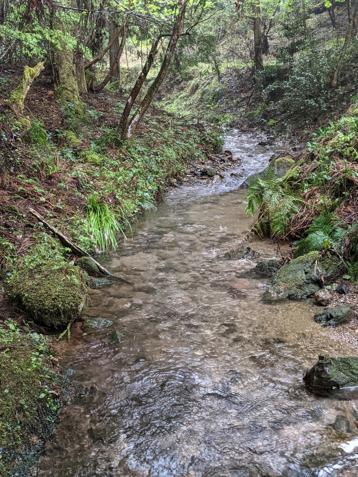 農園。竹林、渓流、森林、岩場と自然を利用した憩いの農園を目指す。
