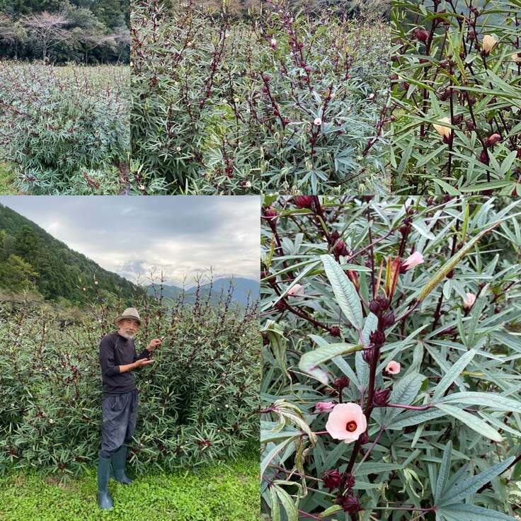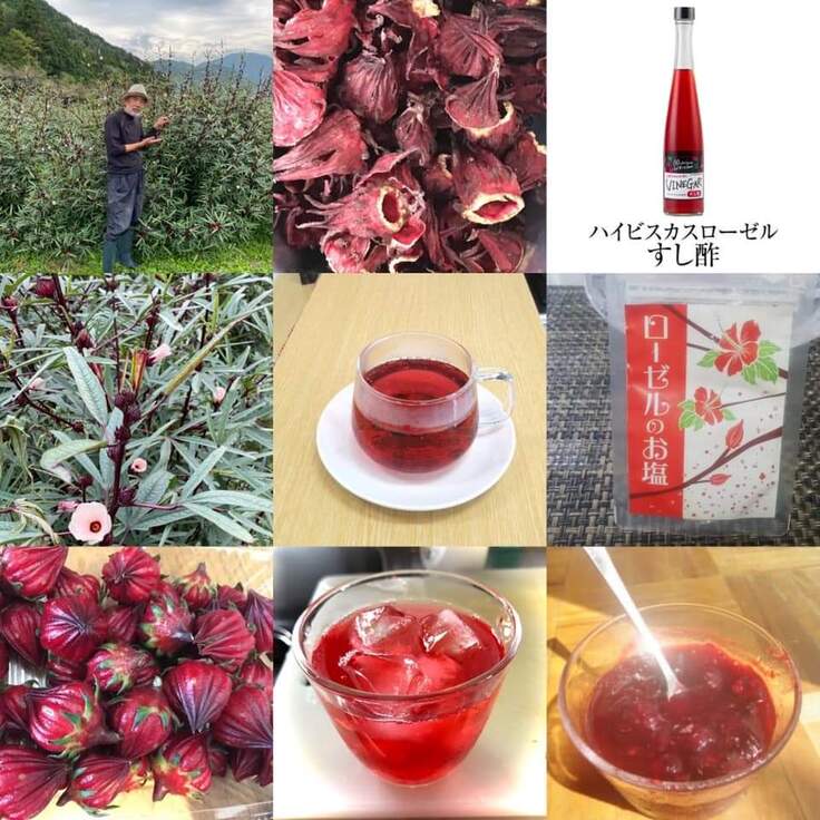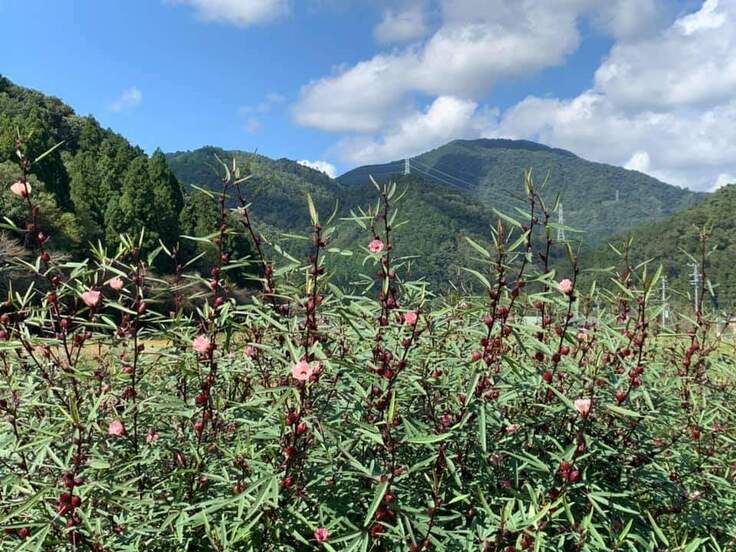 ローゼルー秋に色々な花を咲かせ実をならせるビタミンCの宝庫で、栽培することでCO2を削減させる地球にやさしい野菜。