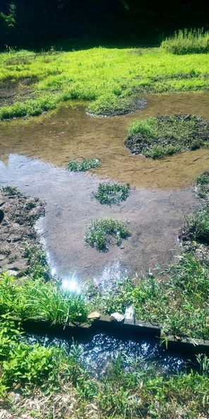 山に挟まれ、山からの豊富な水を利用してクレソンの池と水流をはり巡らせた自然豊かな