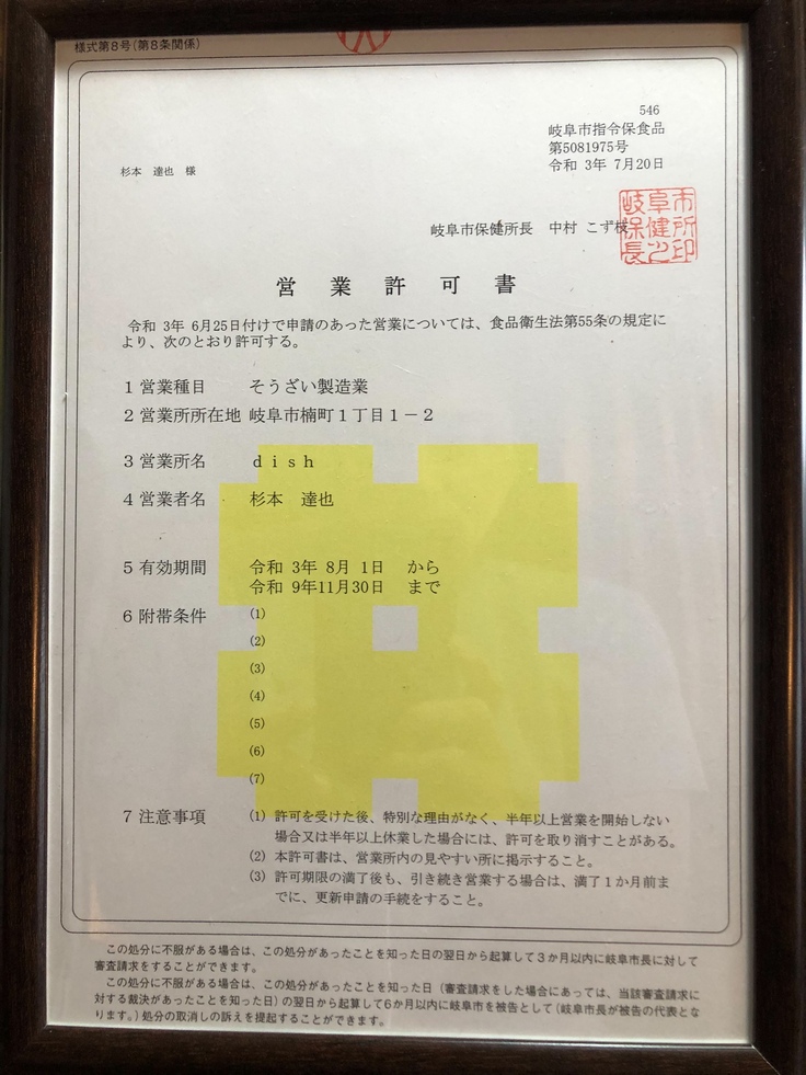 (取得済の営業許可証)