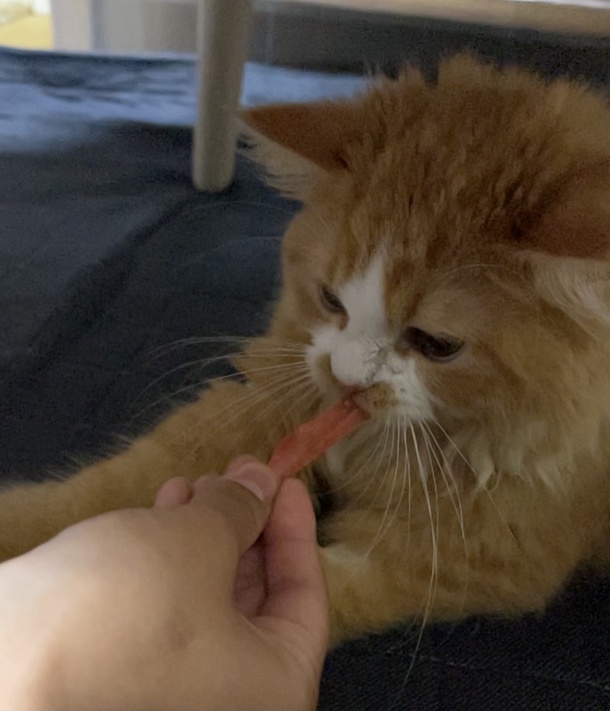 それが今ではカリカリタイプの餌や、マグロのおやつまで食べれるようになりました😊