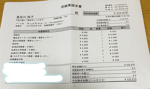 (これはキュルの通院している病院のお薬の現在の価格です。輸入時期や各病院により大幅に異なります。)