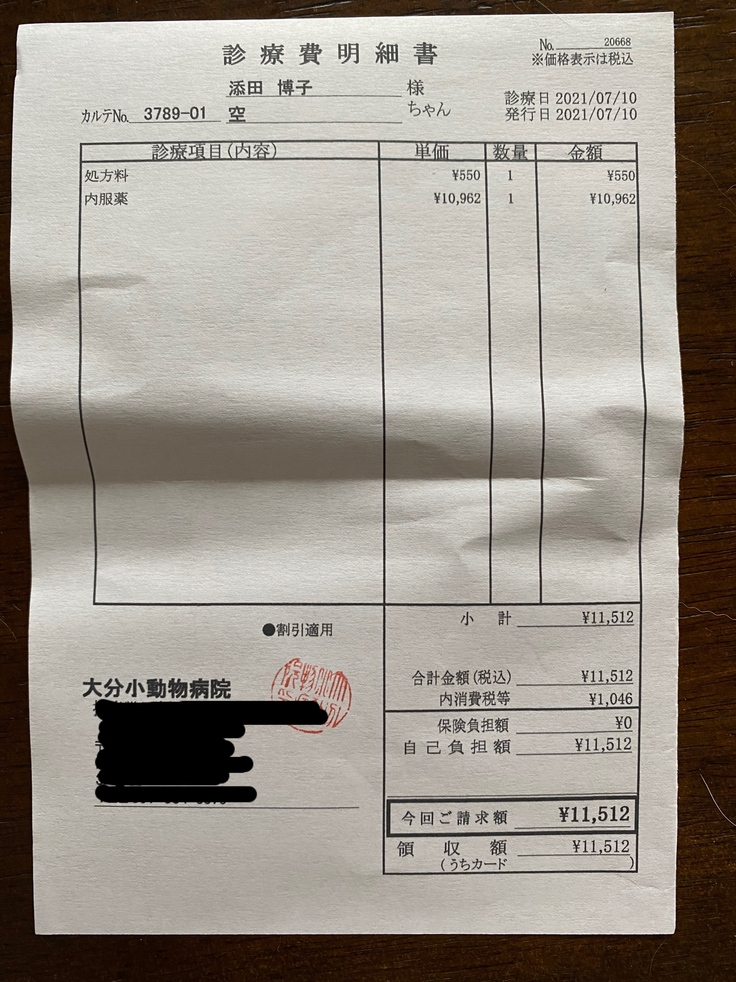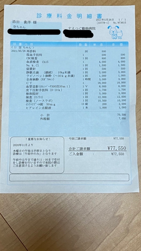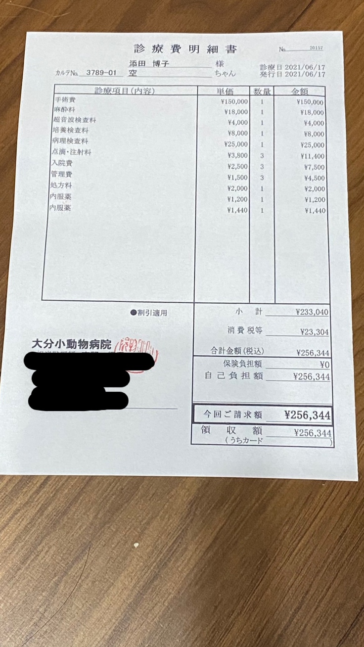 そんな経済状況の中、空(くう)が原因不明の病気になり、いろんな病院を巡り、その度に診察代や検査代がかかりました。また我が家のもう1匹の猫も今年3月に腸閉塞を起こし、開腹手術を受け一命を取り留めましたが、かなりの手術代、通院費がかかってしまいました。