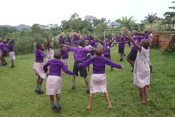 今回、ウガンダ行きを決めたきっかけは、下記の写真を目にした時です。この写真を見た瞬間「この紫色の制服を着た子ども達に会いに行きたい!」そう思い涙がでてきました。この写真は体操をしているのかもしれません。でも私には子ども達が空に向かって手を伸ばしているように見えたのです。私の想いの中には子ども達の「自立支援」という言葉もあります。私は子ども達が実際に手を伸ばし、夢をつかみ、生きる希望を得るためのお手伝いができたらと思い、渡航を決意しました。