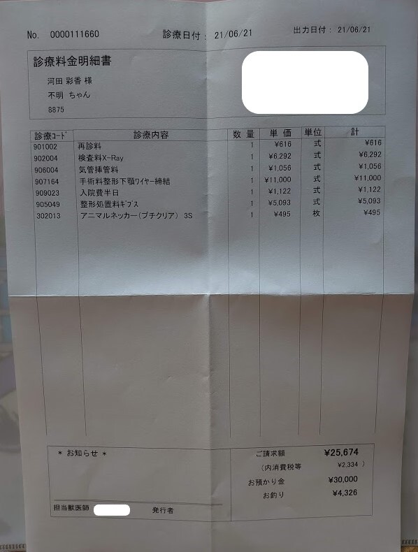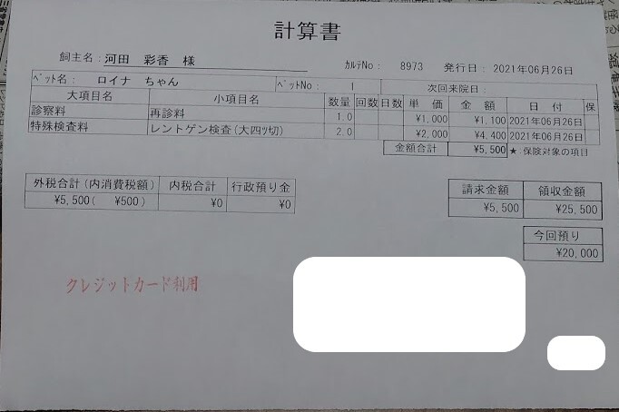 使用目的 :手術後の通院費やお薬代、検査料、ワクチン接種、去勢手術