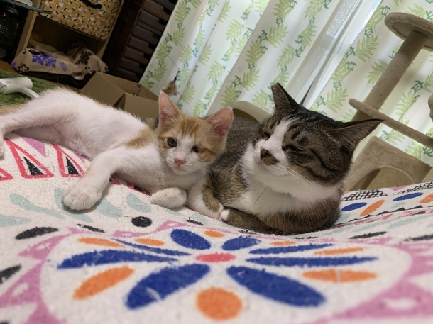 感謝のメールと一緒に手術後の写真と仲良し3匹の写真