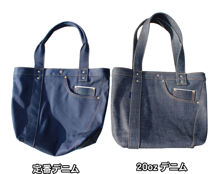 【定番デニムと極厚20ozデニムで作ったバッグの比較】