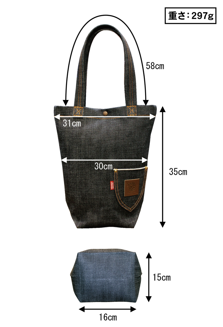 ヘビーウェイトのプレミアムジーンズデニムバックが完成しました。