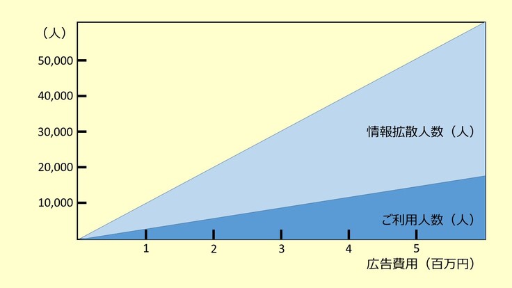 これらの予測から、全国の画像診断が必要な約30万名の医療従事者に対してどの程度の費用をかければ実際に何人くらいに情報が拡散し、何人くらいが使っていただけるかが予測できます(下図)。