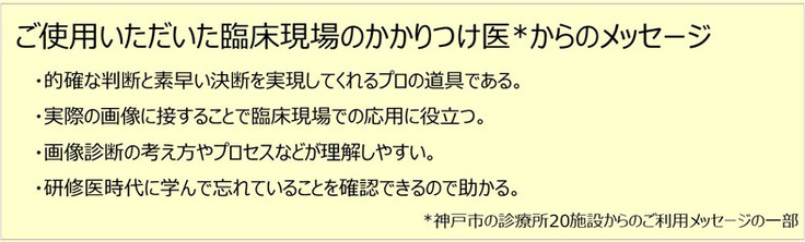 皆様のご協力により、ひとりでも多くの医療従事者に”画像診断ナレッジサービス「読影指南」”を知っていただき、疾患の早期発見により、患者やその家族の肉体的、経済的、さらには精神的な負担軽減に貢献したいと思います。