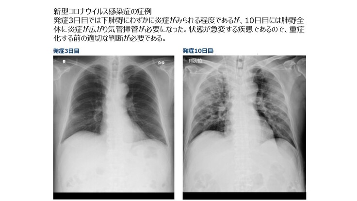 新型コロナウイルスによる感染拡大が一段落しても、季節性インフルエンザのように人類は新型コロナウイルスと共存することが必要となります。したがってWHOがアドバイスを行っているように入院前に一般のかかりつけ医などが画像診断を行い、専用病棟への入院の必要性などを判断するケースが想定されます。