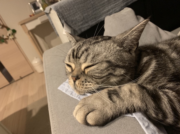 昨晩のシル君ですが、体調を崩す以前は毎日のように丸くなっていた場所でスヤスヤしていました。少しずつ元気な時に姿を見せてくれると一段と安心します。
