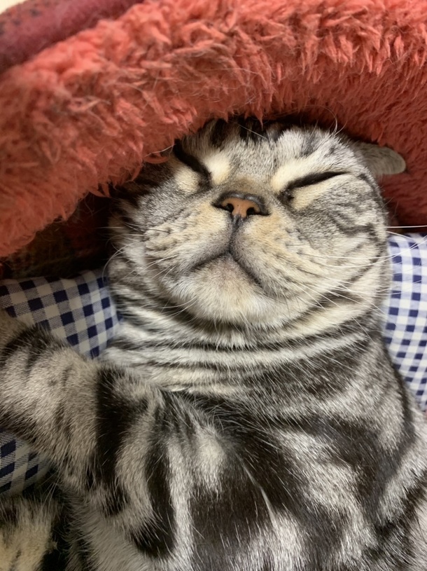 FIPの再発兆候は今のところない様に感じています。食欲も排便もちゃんとあって、何より体重はFIPになる以前の値より超えてしまいました。過去最高の体重で座るとおにぎりみたいなフォルムになります。