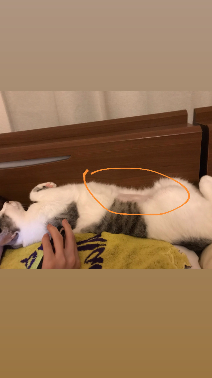 ↓エコー検査でお腹の毛を剃ったはるちゃん、仰向けで寝る事が多くなりました。