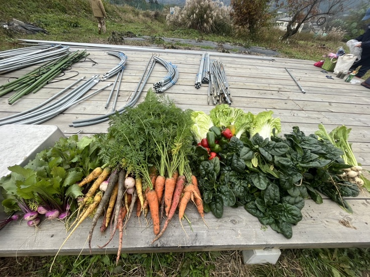 お陰様でイチカラミナマデの活動も10ヶ月がすぎ、冬野菜と来春の作付けも終わり沢山の収穫物に恵まれております。