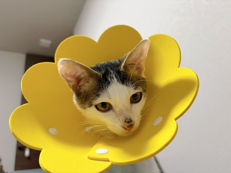 カラーはストレスがかかってしまいそうで心配ですが、悪化する方が嫌なので、ごまさんには少し我慢してもらいます。。