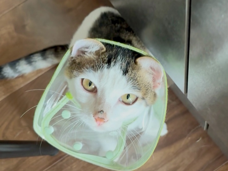 エリザベスカラーで耳がつぶれて
