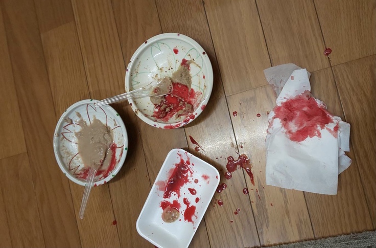 もともとたまに少し血が出ることもあったのでその時には止血剤を打っていましたが、食事中にこんなに出たのは初めてでした。