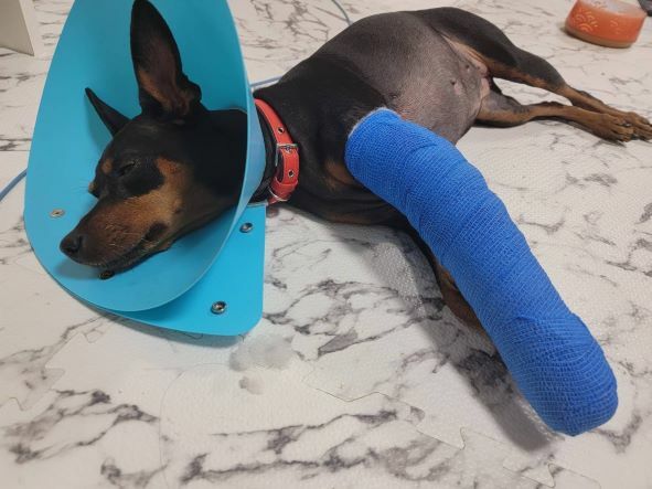 まず、私が入院中に犬のチョコさんが前足の関節を骨折してしまい、2週間ギブスで頑張りましたが、くっつく気配が無いということで、11/8日手術をしました。手術をして、なかなか術後の腫れがひかず、入院が長引き、やっと退院してからも、手術をした足を使わないので、ギブスがとれず、現在、入院してリハビリ中です。※ちょっと、ボーとするお薬を使い固くなった関節を曲げ伸ばししてるそうです。面会もさせてくれるので定期的に会いに行っております。