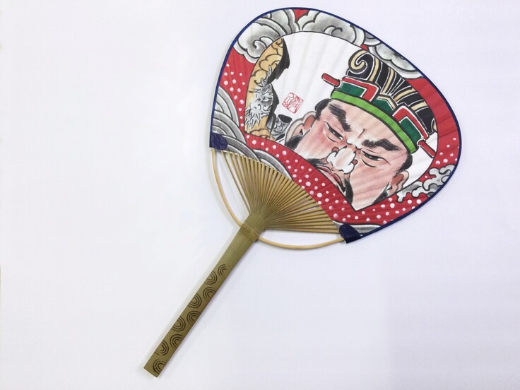 本学のねぷたでは30年続けてねぷた絵を制作いただいている聖龍院龍仙氏に、うちわ絵も制作いただいており、これを基に弘前大学ねぷた絵特製うちわを製作しています。