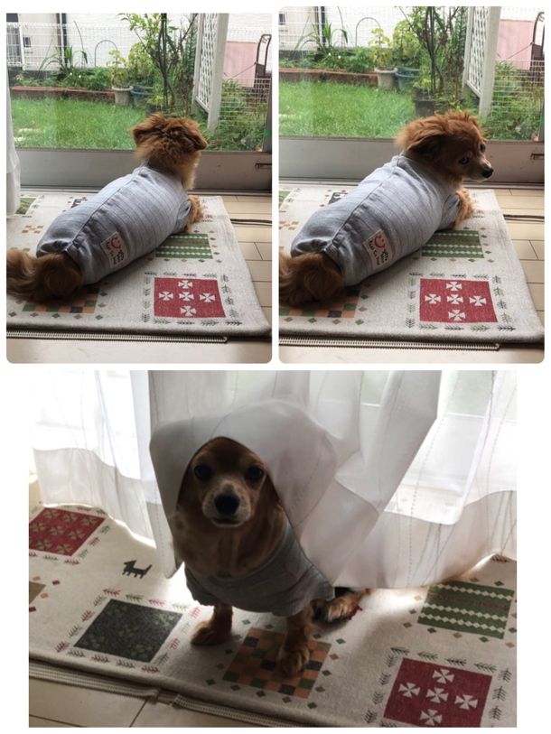 何かほしくてカーテンから顔出して、おねだりしてます…😅