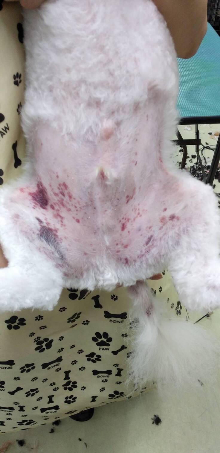 担当の方は焦った様子で、「ソウ君の様子がおかしい。シャンプーしただけで、内出血が至る所に出ています」との連絡がありました。